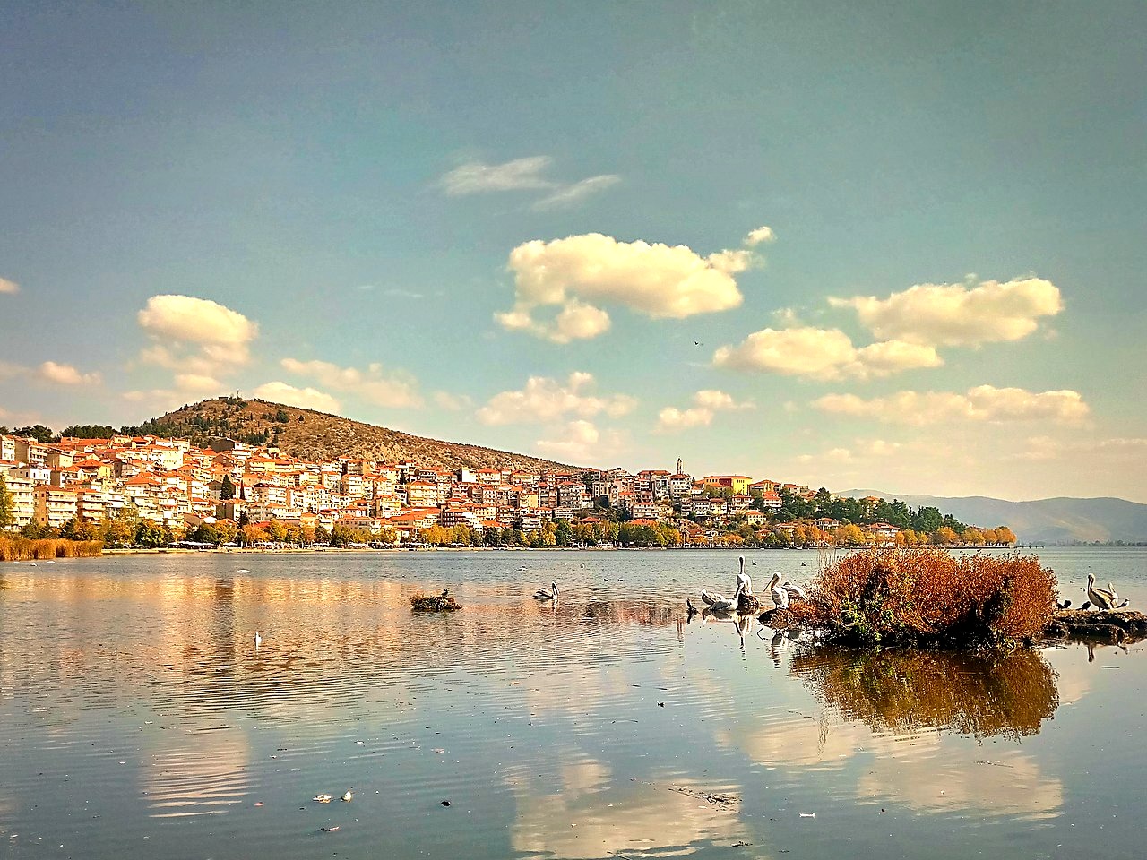 Σαν ένα κρυστάλλινο δάκρυ που δεν πρόλαβε να στάξει, κι έμεινε εγκλωβισμένο και λαμπερό στο βλέφαρο της ξηράς, κάπως έτσι η Καστοριά, αγγίζει με χάρη τα νερά της λίμνης Ορεστιάδας, και στέκεται αρχοντική και περήφανη πάνω στο υγρό της μάγουλο.