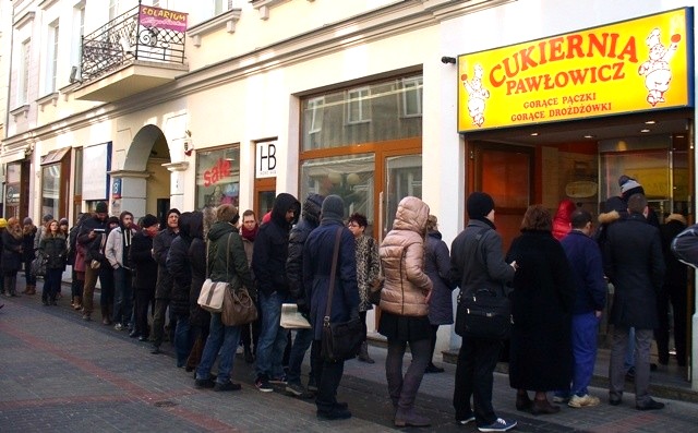 Όμως … για σταθείτε λίγο! Δεν σας μυρίζει κάτι γλυκό; Κάτι που θυμίζει κέικ και μπισκοτάκια; Νομίζω ότι ξέρω από πού έρχεται η μοσχοβολιά. Από ένα τοσοδούλικο μαγαζί με στενή πρόσοψη. Ας πλησιάσουμε να δούμε προς τί αυτή η ουρά από κόσμο. Να ορίστε, βλέπω στη λιλιπούτεια βιτρίνα ταψιά το ένα πάνω απ’ τ’ άλλο με κάτι αφράτα γλυκά ντόνατς! Αυτά τα ντόνατς που γεύτηκα σε όλη την Πολωνία ήταν τα καλύτερα που έχω δοκιμάσει, φρεσκότατα, και παρότι θα βρείτε πολύ κόσμο να περιμένει, πιστέψτε με, αξίζει την αναμονή.