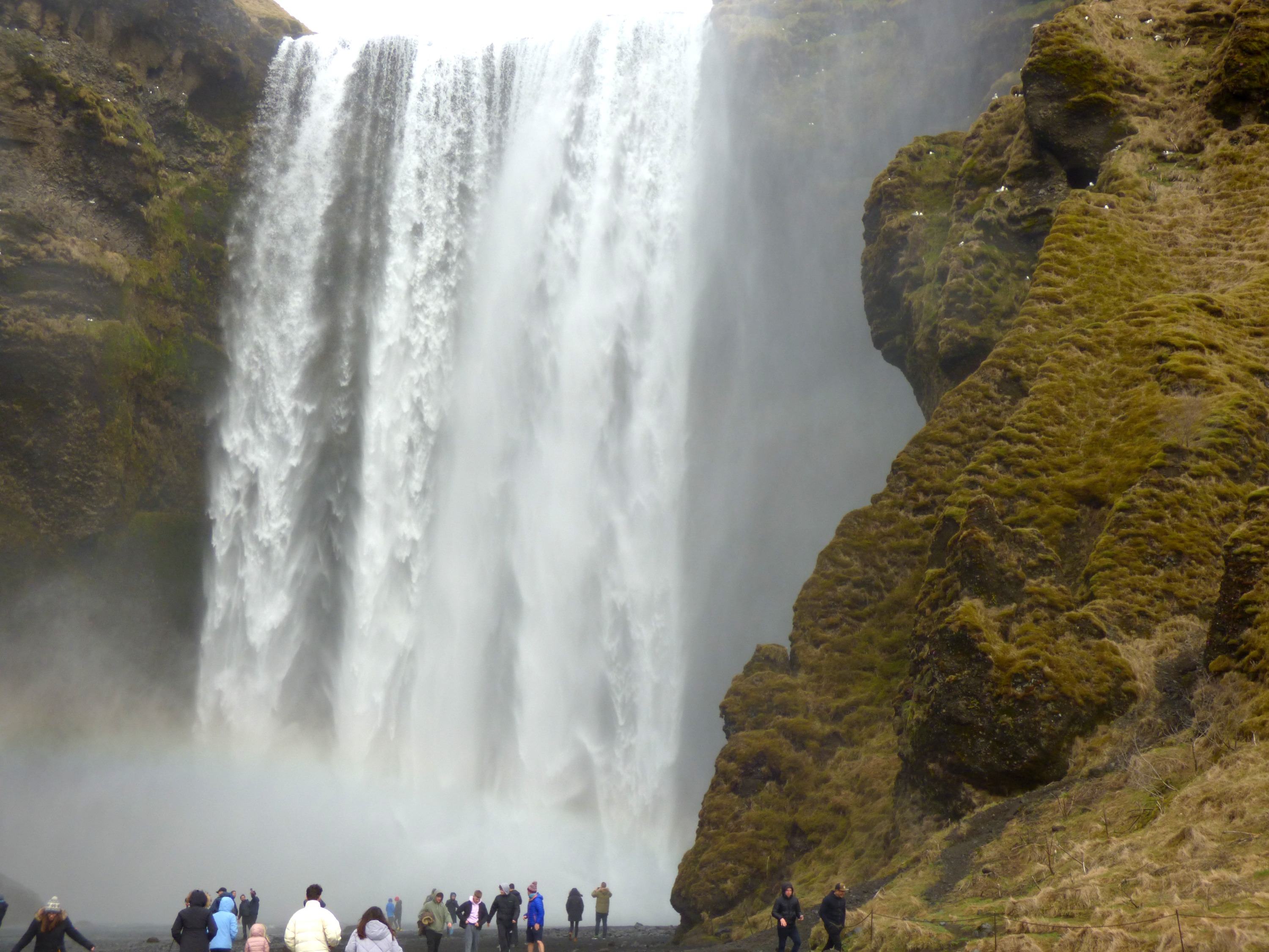 Αφήνοντας ένα κομμάτι της καρδιάς και της ψυχής μου εκεί, σηκώθηκα, πέρασα τις πέτρες-βήματα (είχα λάβει εκπαίδευση στα μικράτα μου όπου το χαλί ήταν η λάβα και έπρεπε να της ξεφύγω πατώντας στα μαξιλάρια) και βγήκα στον ήλιο να ψιλοστεγνώσω πριν επιστρέψω στο αυτοκίνητο. Επόμενος καταρράκτης ο Skógafoss. Είναι ένας από τους μεγαλύτερους της χώρας, με 25 μέτρα πλάτος και 60 μέτρα ύψος. Λόγω της ανοιχτωσιάς που έχει μπροστά του, το συνονθύλευμα των σταγονιδίων αντανακλά το ηλιακό φως, προσφέροντας το θέαμα ενός ή και δύο ουράνιων τόξων. Ειρήσθω εν παρόδω, κάτω από αυτόν τον καταρράκτη έπαιξε φασούλα με Τζον Σνόου και Καλίσι, μετά από μία κουραστική βόλτα με τους δράκους!
