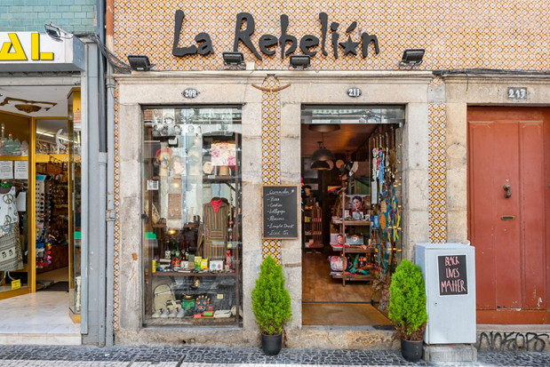 Ένας από τους λόγους που πήγαμε στην Σεντοφέιτα ήταν ότι ψάχναμε το LaRebelion (Η Εξέγερση), το πρώτο κατάστημα στην Πορτογαλία που αφιερώνεται αποκλειστικά στην πώληση προϊόντων εμπνευσμένων από παγκόσμιες επαναστάσεις, διάφορα κινήματα, ακτιβισμούς, κλπ. Το κατάστημα ξεκίνησε να λειτουργεί στις 25 Απριλίου 2018, ημέρα της επετείου της Επανάστασης των Γαρυφάλλων του 1974, που ξεκίνησε όταν στις 12:20 το βράδυ δόθηκε το σύνθημα από τους ήχους του «Grandola, Vila Morena» στο κρατικό ραδιόφωνο. Από εδώ έκανα και τις αγορές που τόσο πολύ ήθελα…