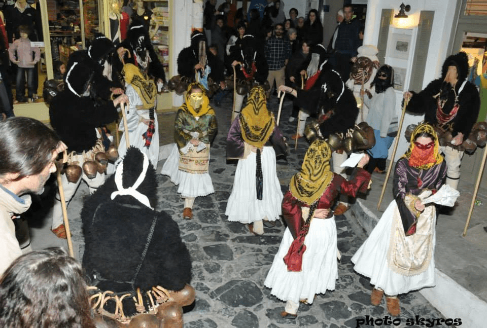 Όποιος έχει επισκεφτεί τη Σκύρο καλοκαίρι και έχει γνωριστεί με τους ντόπιους, σίγουρα έχει ακούσει ιστορίες για τη Σκυριανή Αποκριά. Ιστορίες που λέγονται από μικρούς και μεγάλους και που συνήθως συνοδεύονται από χαρακτηριστικές φωτογραφίες και γελαστά πρόσωπα, γεμάτα προσμονή γι’ αυτήν την μοναδική εποχή του χρόνου. Μοναδική για όλους τους Σκυριανούς, που μετράνε τις μέρες αντίστροφα – όπως τα παιδάκια για τα Χριστούγεννα – από τις πρώτες κακοκαιρίες του φθινοπώρου. Με λίγα λόγια, μόλις «μυρίσει» χειμώνας, κάθε κάτοικος του νησιού ονειρεύεται και λαχταρά τις Απόκριες. Και όχι άδικα.