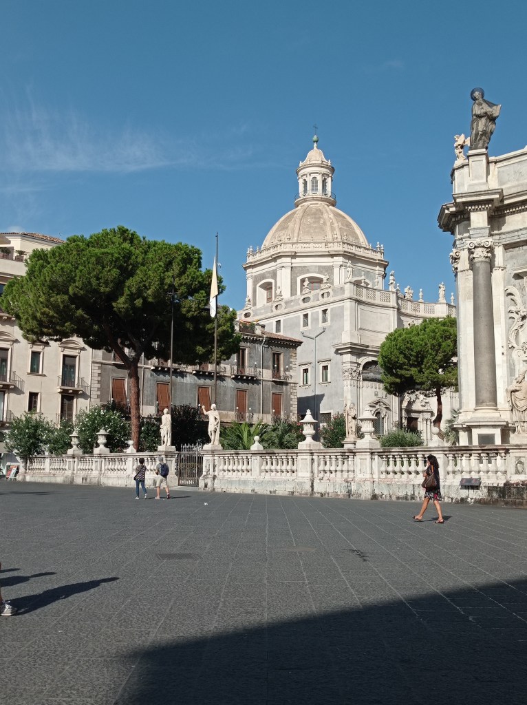 Το κέντρο της είναι η Piazza Università και η Via Etnea καθώς και η περιοχή της Ιχθυαγοράς στην Piazza Alonzo di Benedetto. Τι έγινε; Σας μύρισε ψαράκι; Ας κάνουμε λοιπόν μια στάση για ένα μεζεδάκι στο ξακουστό κι αγαπητό «Scirocco Sicilian Fish Lab». Δεν προτείνω συγκεκριμένο πιάτο. Θα σας κατευθύνει σίγουρα η μύτη σας κι η λιγούρα που θα σας δημιουργηθεί! Και τώρα που φάγαμε, δεν το καθυστερώ άλλο και θα σας κεράσω ένα απ’ τα πιο ωραία παγωτά που δοκίμασα εδώ. «Don Peppinu» στο νούμερο 20 της Via Etnea, βλέπετε, διαλέγετε, γεύεστε! Αν επιλέξετε γρανίτα, θα σας ρωτήσουν αν θα την συνοδεύσετε με μπριός ή όχι. Για να δείξετε ντόπιοι κόψτε κομμάτι απ’ το αφράτο ψωμάκι – με το χέρι εννοείται – βουτήξτε το στη γρανίτα σας και κάντε το μια χαψιά! Με αυτά και με τ’ άλλα πέρασε η ώρα και η νύχτα πέφτει … όχι στο Παλέρμο, αλλά στην Κατάνια. Αυτή είναι η πιο όμορφη στιγμή να περπατήσουμε κατά μήκος της Via Crociferi, από το άγαλμα Cardinale Beato Dusmet προς την αψίδα του San Benedetto και τις επιβλητικές εκκλησίες του 18ου αιώνα, μέχρι τα σκαλάκια στο τέρμα της. Δεξιά κι αριστερά έχει αναρίθμητα μπιστρό με ενδιαφέρον μενού, εγώ όμως θα σας πάω σε ένα αγαπημένο στέκι για να πιούμε bloody mary και να τσιμπήσουμε κατιτίς κάτω από τα κλαδιά των δέντρων και ανάμεσα σε ντόπιες παρέες : Razmataz | Wine Bar, στη Via Montesano, 17/19.