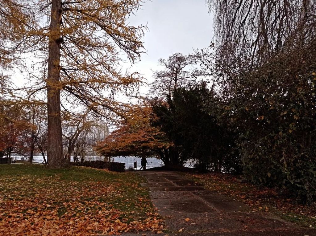 Κι αφού φτάσαμε μέχρι εδώ, λέω να πάμε ως τη στάση του τραμ και να χωθούμε σ’ ένα με κατεύθυνση προς το Tiefenbrunnen. Να κατέβουμε στη στάση Fröhlichstrasse, να μπούμε για έναν καφέ και μια λιχουδιά στο εξαιρετικό κι αγαπημένο «BACKbAR«, κι αφού πάρουμε δυνάμεις, να εγκαταλείψουμε έστω κι απρόθυμα τις αχνιστές τζαμαρίες του και να περάσουμε απέναντι για να κινήσουμε προς τη λίμνη. Και να βρεθούμε ξαφνικά στην εξοχή, στο δάσος, στα παγωμένα νερά, στη γειτονιά των παπιών και των κύκνων, στη θέα των χιονισμένων βουνών, τόσο έξω από την πόλη αλλά στην πραγματικότητα μόλις 7 λεπτά μακριά της. Τον χειμώνα αυτή είναι η καλή πλευρά για να περπατήσετε στη λίμνη. Το πανέμορφο πάρκο Zürichhorn. Μπορείτε να περιπλανηθείτε, να μυρίσετε τον φρέσκο βουνίσιο αέρα, να παίξετε σαν παιδιά, να φτάσετε περπατώντας ως την εξέδρα Aussichtspunkt Riesbach και να πάρετε το τραμ της επιστροφής από το Feldeggstrasse.
