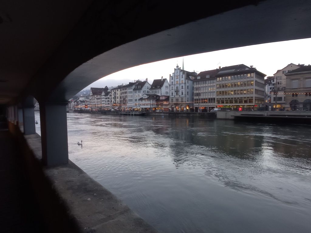 Κι αφού τελειώσαμε με την πρώτη μας βόλτα, ελάτε να σας πάω και την άλλη που υποσχέθηκα. Στο κέντρο της πόλης ξανά, στην πλευρά απέναντι από την επιβλητική εκκλησία Grossmünster, θα σας κάνω έναν σύντομο αλλά παραμυθένιο περίπατο. Ξεκινώντας από τη γέφυρα Münsterbrücke κατεβαίνουμε τα σκαλάκια και προχωράμε παράλληλα με το ποτάμι στην Wühre. Βγάζουμε φωτογραφία τις χήνες και τα παπάκια, τους ρίχνουμε λίγα ψίχουλα και συνεχίζουμε έτσι δίπλα στο νερό μέχρι τον σταθμό των φεριμπότ, όπου σκύβουμε τα κεφάλια μας, μπαίνουμε μέσα στην «τρύπια» στοά και ενώ περπατάμε, αγναντεύουμε στα δεξιά μας την άλλη όχθη μέσα από τις καμάρες, ενώ στα αριστερά μας θαυμάζουμε τις περίτεχνες «μυστικές» βιτρίνες. Βγαίνοντας απ’ αυτή την στοά, βρισκόμαστε στην υπέροχη πλατεία Weinplatz όπου αποχαιρετάμε τα νερά του ποταμού, για λίγο μόνο, και κινούμαστε αριστερά και αμέσως δεξιά, όπου θα ανακαλύψουμε το δρομάκι ή τα σκαλάκια αν προτιμάτε που μας οδηγούν στο Lindenhof.